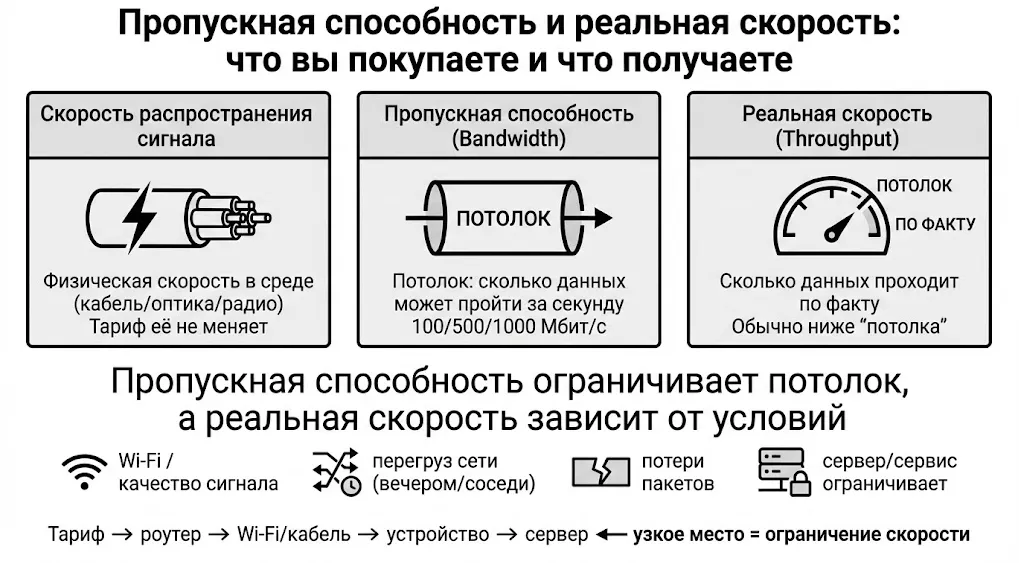 Bandwidth и скорость интернета: почему 100/500/1000 Мбит/с не гарантируют скорость