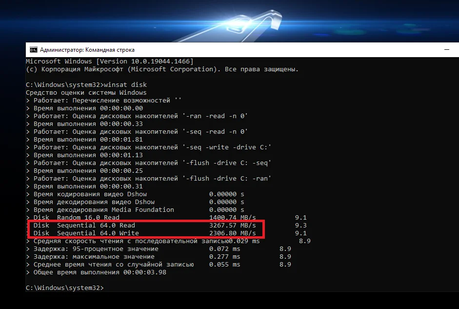 Пишет мне покупатель, и настаивает на тест скорости через командную строку и тест на AS SSD Benchmark