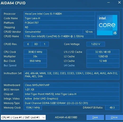 Модель процессора11400H