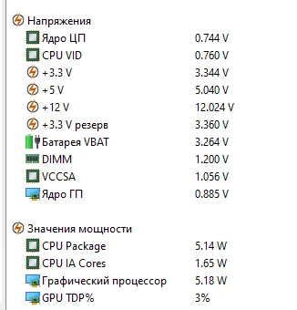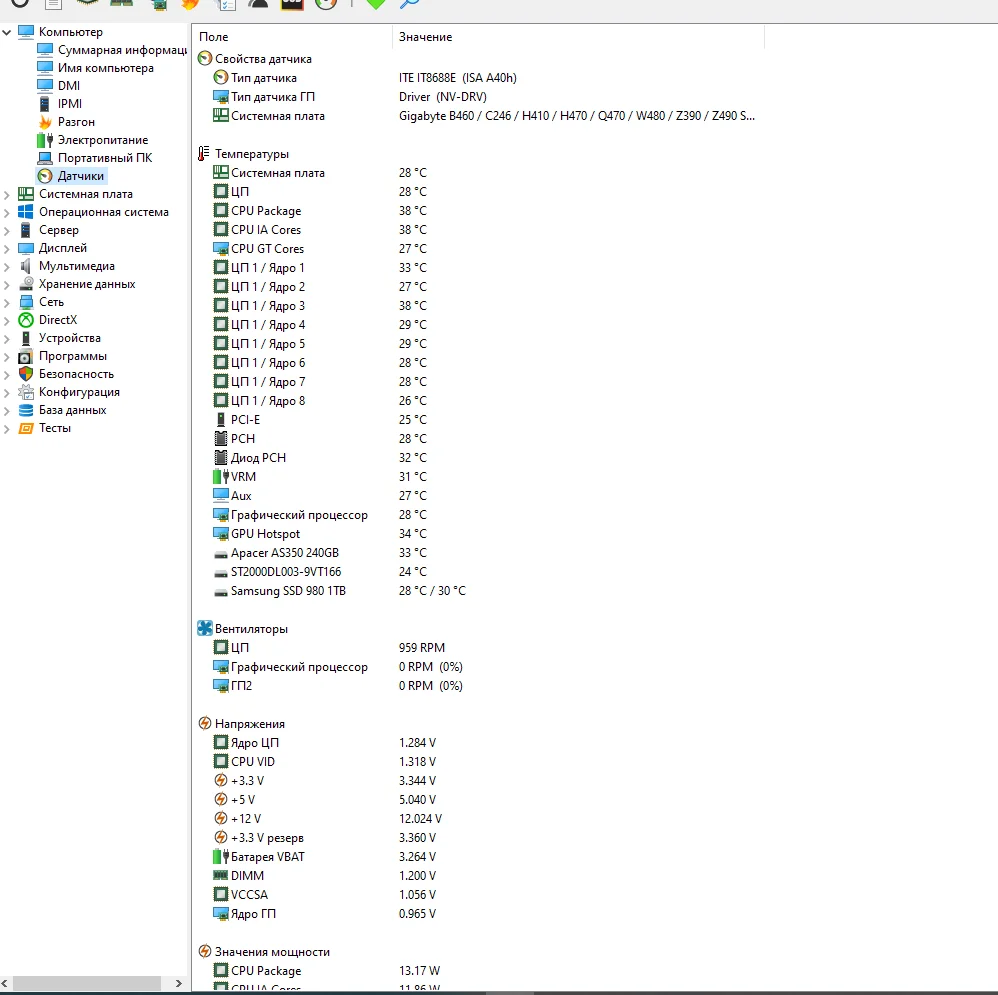 На старой так же все было, не сильно шарю в этой теме, но вот показания с аиды