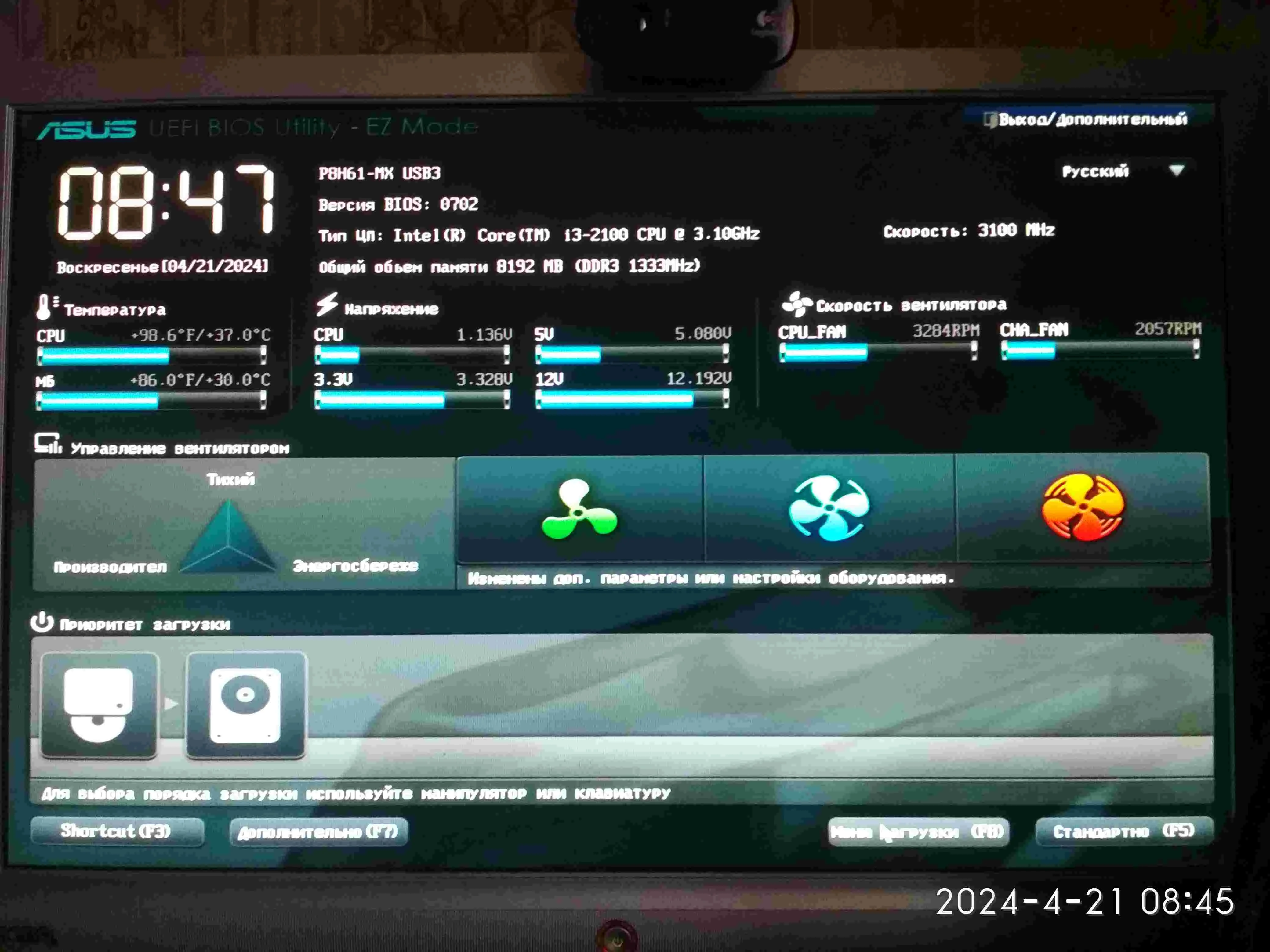 Просьба к Вам, подскажите, как можно решить проблемку, Дело в том, что при включении, компьютер всегда загружается с диска где не установлена ОС. Всегда перезагружаю компьютер, вхожу в БИОС, выбираю меню загрузок, жму мышкой, выбираю, на нужный диск, и только тогда идёт загрузка ОС. Очень не удобно, стало напрягать.