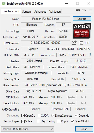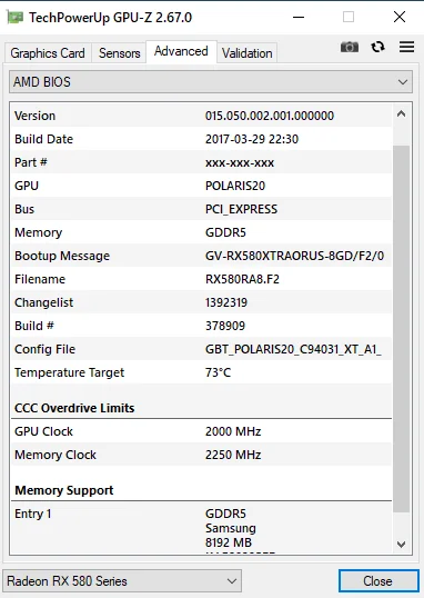 Изучение проблемы было комплексным. Gpu-Z указывает, что субвендор Gigabyte, но на сайте вендора вообще нету похожей визуально по кожуху видюхи. Следовательно - карта рефаб и, скорее всего, собранная и разогнанная под майнинг (тем более на вертушках лого AMD, а не вендора).