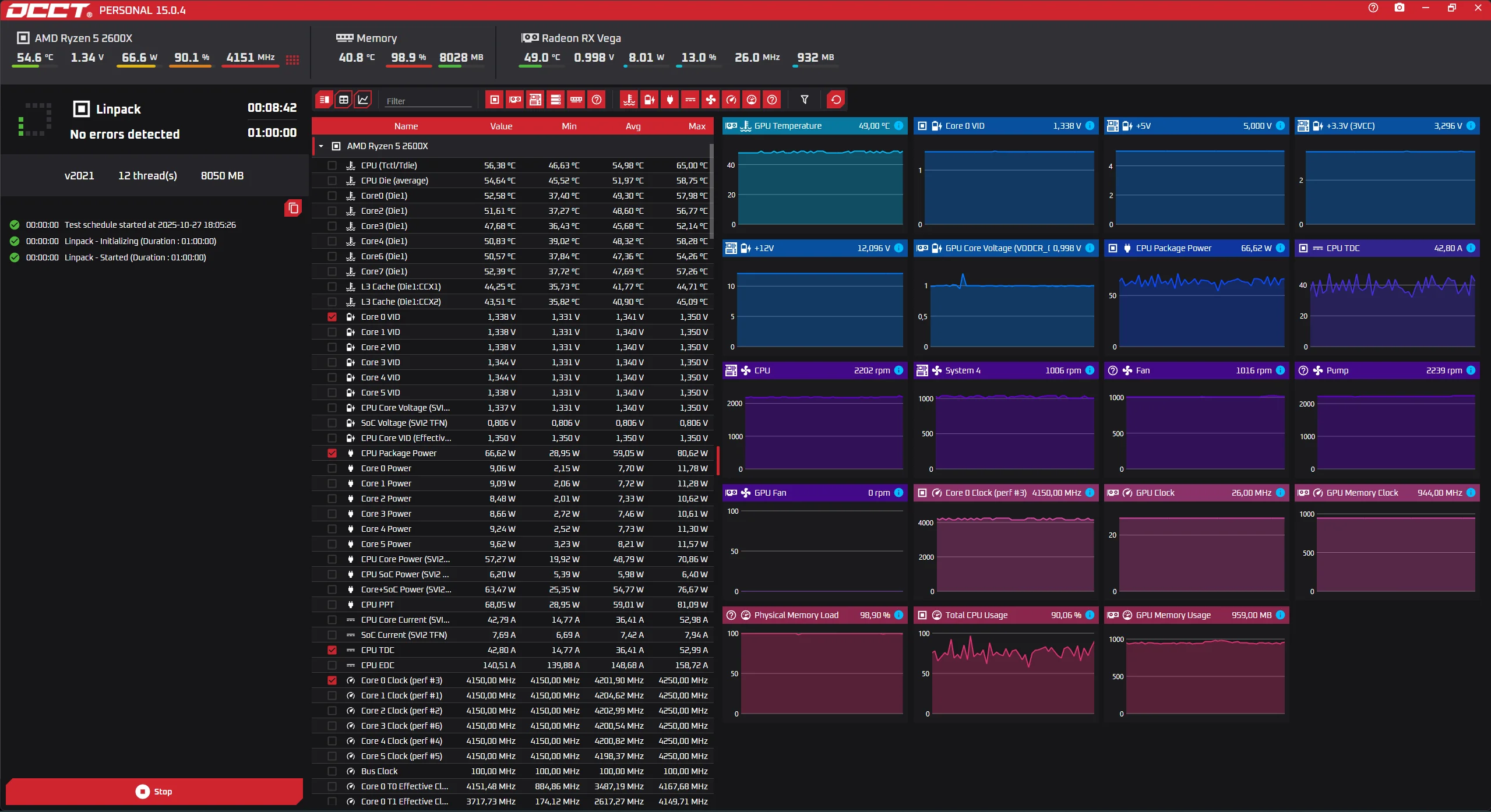 CPU (Ryzen 5 2600X) под нагрузкой: