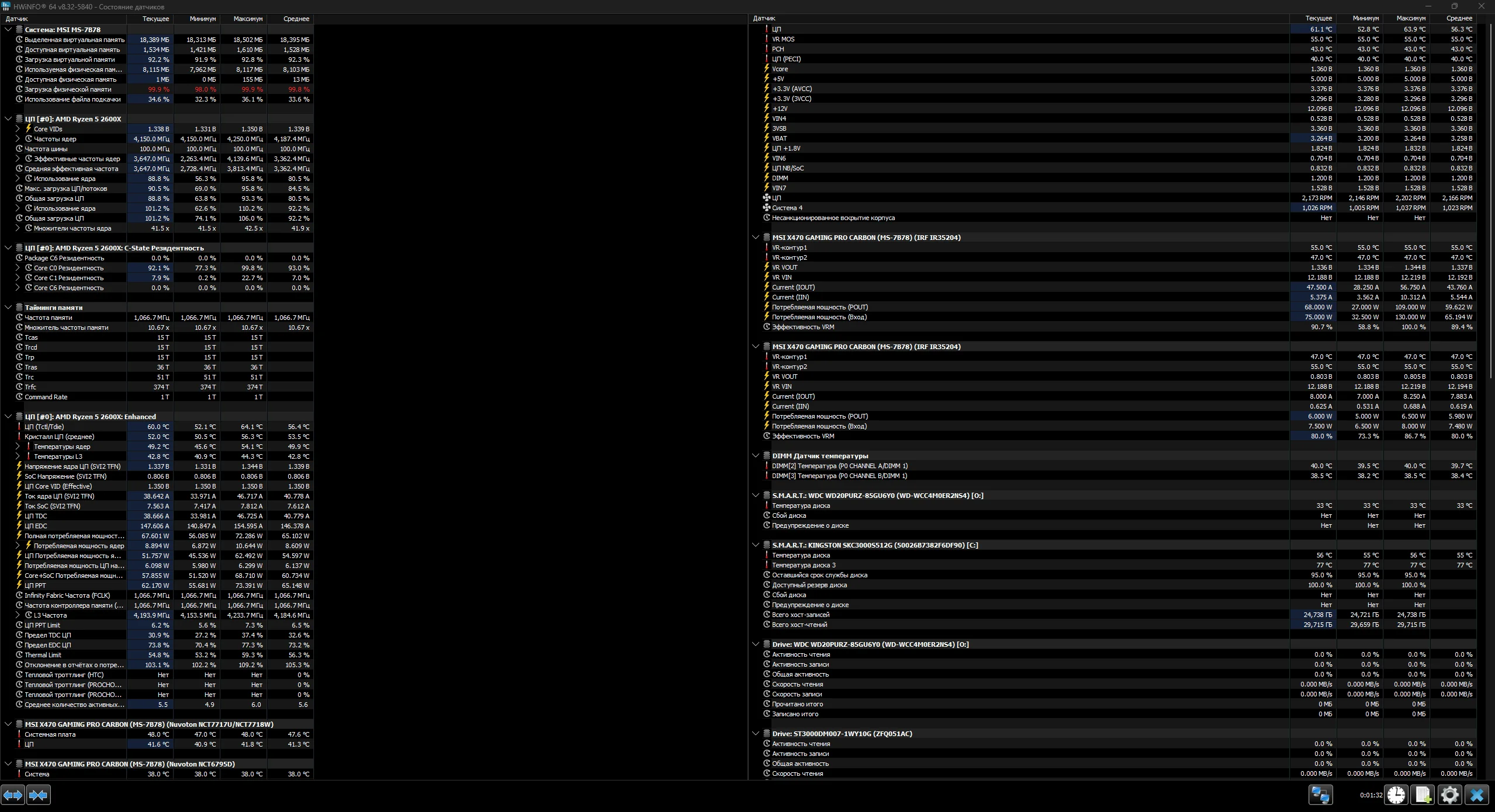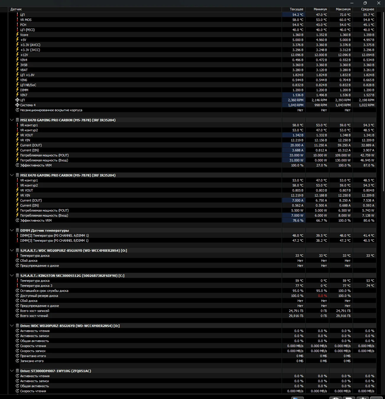 Вот к софтовой проблеме и склоняюсь. Пониженные частоты памяти, полагаю, из за того что в аиде не стоит 2х множитель частоты. Поэтому и не отображается корректно. Макс производительность стоит. Сам адреналин и так на заводских, после чистой переустановки драйвера. Изначально файла подкачки не стояло, по своей прихоти решил включить, сам вижу что значения кушает конечно завышено. После второй переустановки стоял на автомате. Драйвер чипсета установлен последний утилитой с сайта платы. План электропитания изначально был balanced, после обнаружения проблем переключил в макс производительность. Биос не обновлён около года - 2, если считаете проблемой обновлю конечно. Просто со старым до переустановки проблем не было. (Биос сбросил, включал xmp а изначально был вообще ручной разгон) Прикладываю синт. тесты linpack и 3d. Также скриншот производительности rust. Минимальные настройки 1080р 30-50 кадров. Скриншоты производительности stray. Первое 2к ультра настройки, второе full hd минимум, согласитесь, странно, карта грузится в обоих случаях примерно одинакого, и фпс отличается всего на 10-15