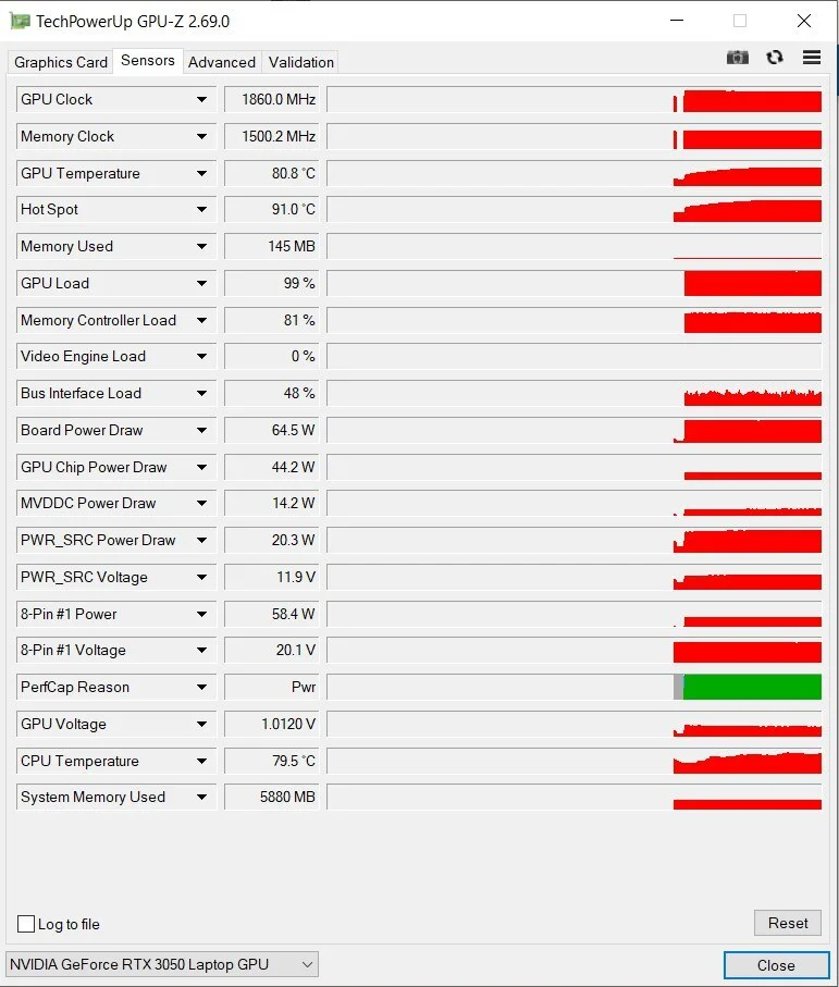 По скринам у тебя не «умерла видеокарта», а больше похоже на софт или режим питания. RTX 3050 у ноута обычно живёт в гибриде, и если после того фриза слетели драйвер/профиль питания/настройки Optimus или включился какой-нибудь BatteryBoost/WhisperMode, получаешь ровно то, что описал: низкий фпс, фризы, дропы, а в винде всё гладко, потому что там рулит встроенная графика. Ещё момент: в GPU-Z шина PCIe показана как x8 1.1 это нормально в простое, но под нагрузкой должна прыгать на x8 4.0, если не прыгает значит дискретка реально не выходит на нормальный режим.